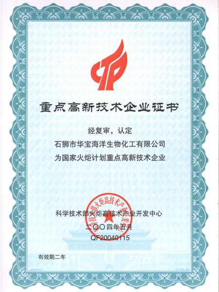 National Key High-Tech Enterprise Certificate