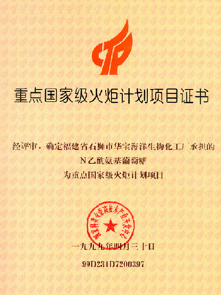 National Key Torch-plan Program Certificate